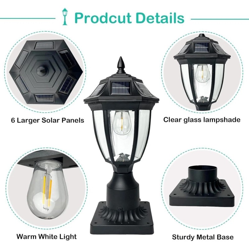 【Wide Use&Decorative】The solar lights outdoor are a perfect solution for replacing traditional, electric-powered post lights providing some basic illumination every night to bring safety and a different decoration experience to your house. The solar lights are a traditional design that fits into any style of outdoor decor. You can use the solar-powered post lights in the front, backyard, along the driveway, walkway, sidewalk, around your patio, yard, entryway, or porch