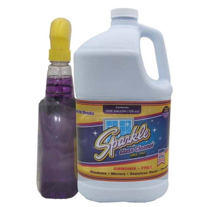 Remove tough dirt, grease and grime with the Sparkle Glass Cleaner Spray Bottle and Refill Combo Pack. You can use it on glass, mirrors, windows, Plexiglass, chrome, countertops, stainless steel, appliances and other surfaces. The formula doesn't etch, pit or dry out surfaces.
