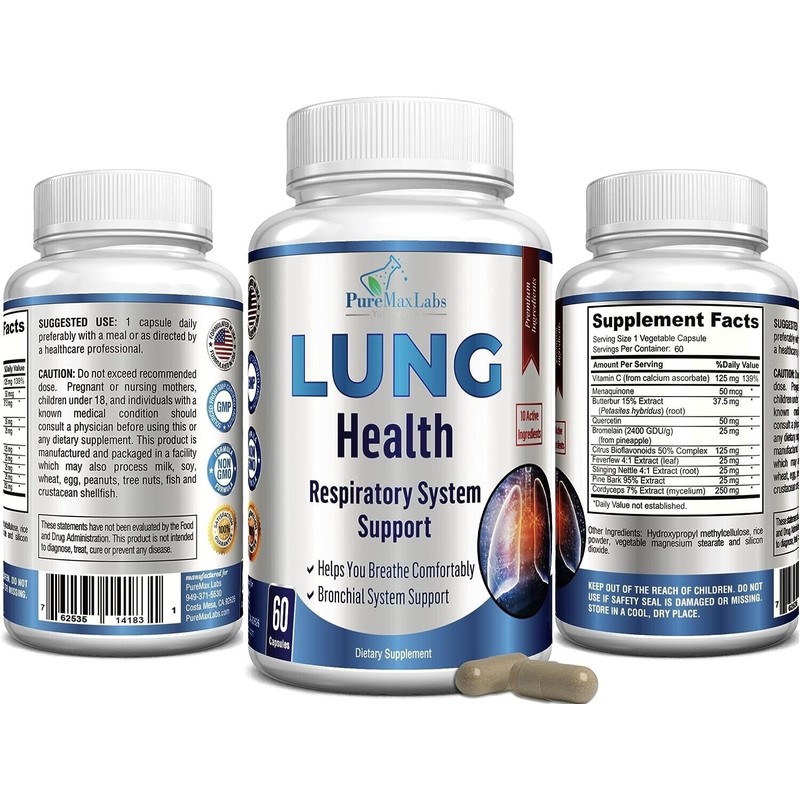 - BREATHE MORE COMFORTABLY YEAR ROUND: PureMax Labs Lung Health supplement is an advanced lung support formulation designed to help you breathe more comfortably year-round. It improves your breathing by keeping airways open and balancing mucus levels. It also works to detoxify and clear your lungs of toxins.