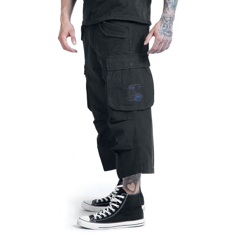 Brandit Industry Men's 3/4-Length Cargo Shorts, Various Colours, Sizes S to 7XL (Brandit Industry 3/4 Herren Cargo Short) - Black , size: xl
