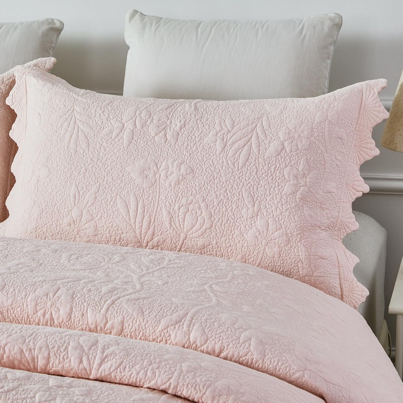 - BRANDREAM SPECIAL SCALLOP EDGE DESIGN - Simply classic quilted pillow shams - Special design adds a stylish accent to your bedroom decoration. SOPHISTICATED yet subtle light pink color fit any bedroom theme.