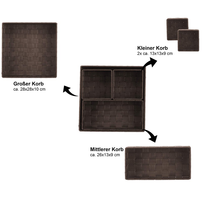 - Practical: the boxes measure 28 cm x 28 cm x 10 cm, 26 cm x 13 cm x 9 cm and 13 cm x 13 cm x 9 cm (2x) and can be stacked inside each other.