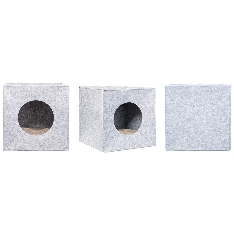 Brandsseller Pet Cave Felt Approx. 33 x 33 x 33 cm Cat Cave Dog Bed with Separate Cuddly Cushion Foldable Light Grey