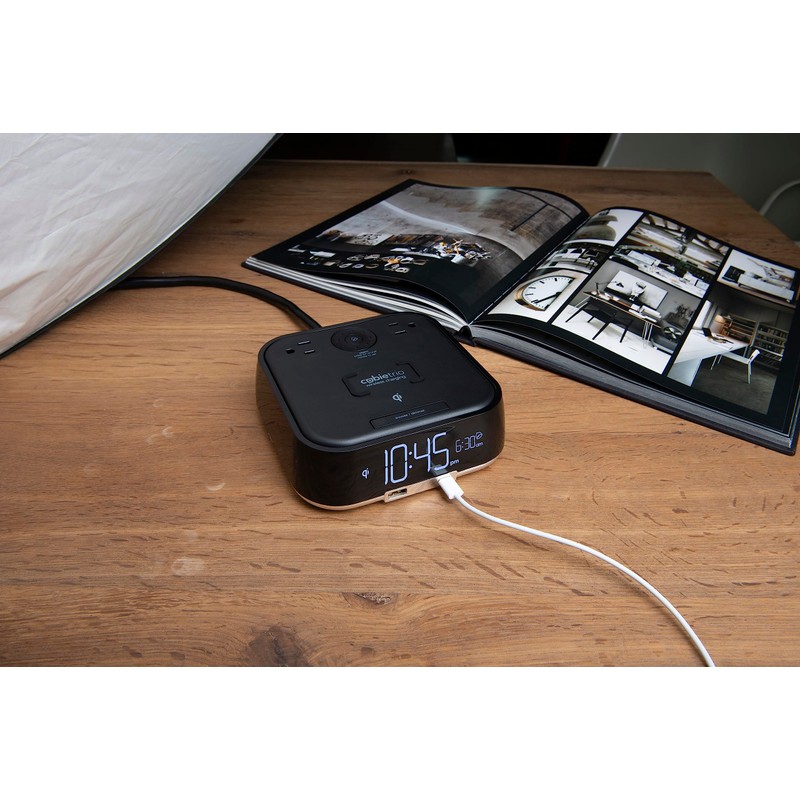 CubieTrio - Wireless Charging Alarm Clock with Outlets and USB Ports