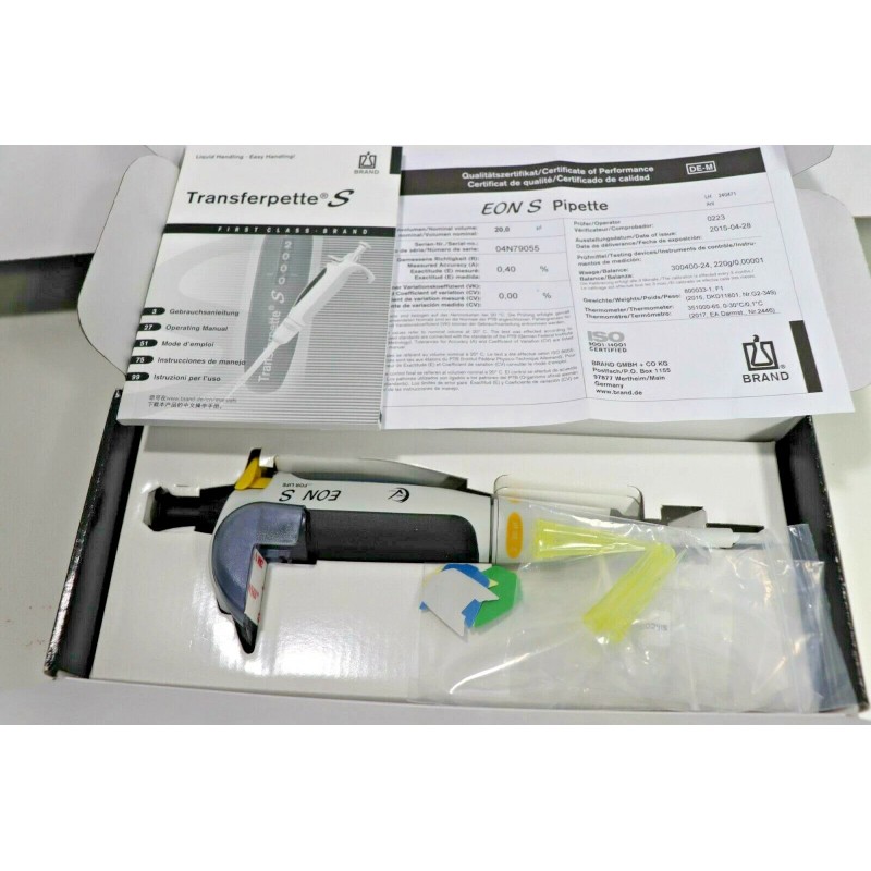 BrandTech NEW Brandtech EON Transferpette S Single Channel Pipette 20-200ul box 96 TIPS