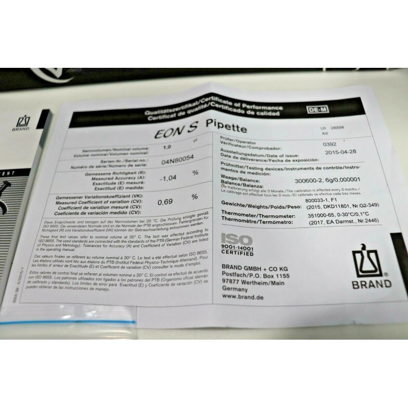 BrandTech NEW Brandtech  EON Transferpette S Single Channel Pipette 20-200ul box 96 TIPS