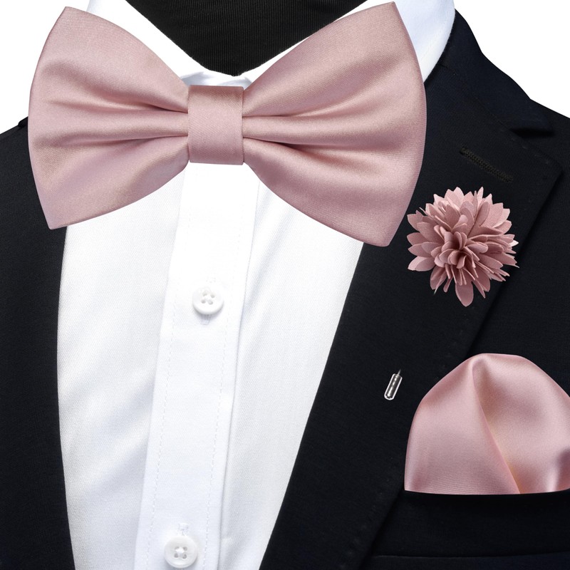 Branduce Mens Light Dusty Rose Bow Tie for Wedding Solid Satin Silk Bowties Pocket Square and Lapel Pin Brooch Set (BB07-30)