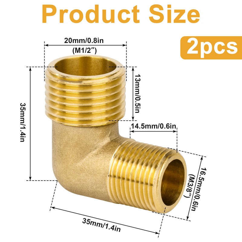 - Size and packaging: with G1/2 inch male x G3/8 inch male threads, the package contains 2 brass elbow pipe connectors that provide everything you need for installation.