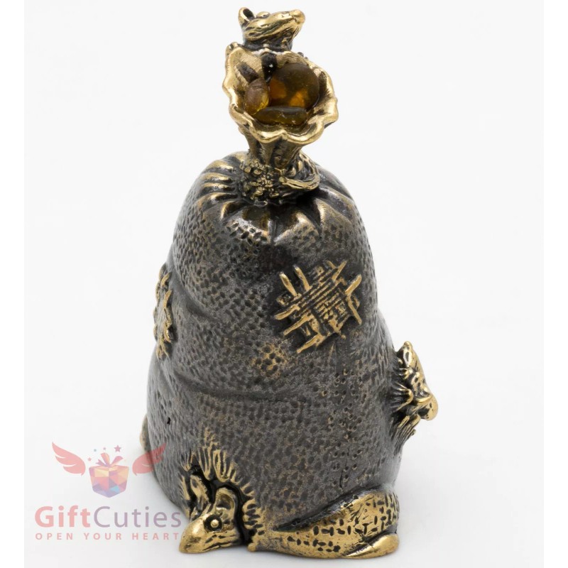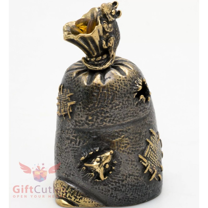 Brass Amber Figurine bell of mice on a sack mouse symbol 2020 New Year IronWork