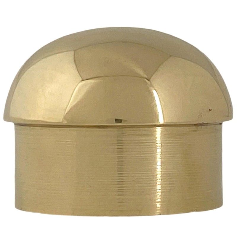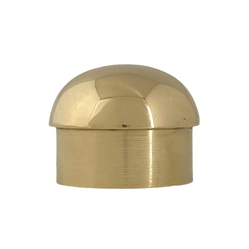2 Inch Dome Cap Cap-off your bar railing with these beautiful end plugs. Heavy duty solid brass construction built for daily wear and tear, and perfect for busy, heavy-traffic areas. Comes complete with an Allen wrench to tighten rail to fitter. Dimensions: 2 inches in Diameter by 1 5/8 inches Long. Insert: 3/4 inches Long by 1 7/8 inches Wide. Construction: Solid Cast Brass.