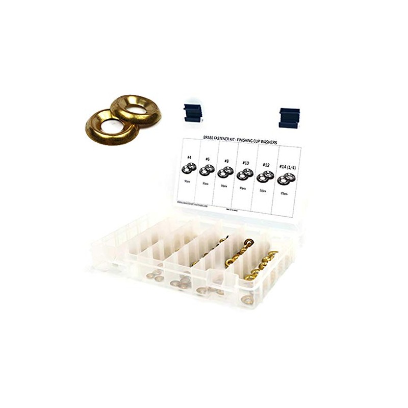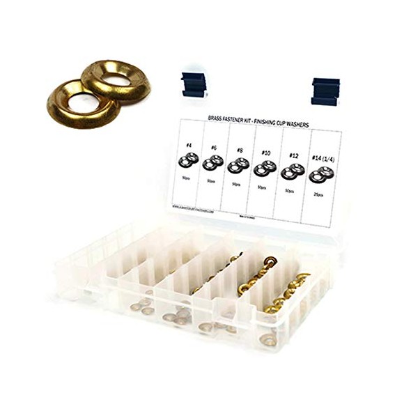 Brass Finishing Cup Washer Countersunk Washer Kit #4 Through 1/4" - 276 Pieces