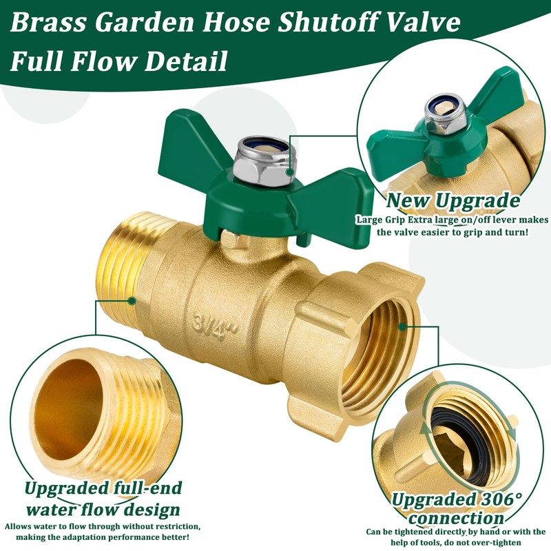 - Multi Purpose: Garden hose shut-off valves should use brass precision 3/4 "GHT threads, compatible with all American standard garden hoses. Whether you have garden hoses, faucets, lawn sprinklers, faucets, faucets, or other garden accessories, this valve will seamlessly integrate into your settings. It forms a reliable connection with the rubber gasket to prevent leakage