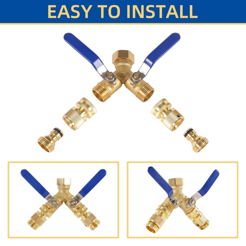 - {Premium Material}: The garden hose Y splitter is made of high-quality brass material, which is strong and sturdy, anti-rust and anti-corrosion, and has a long service life.