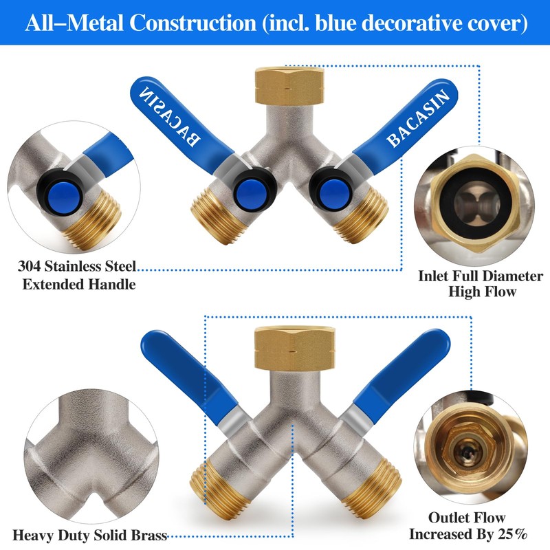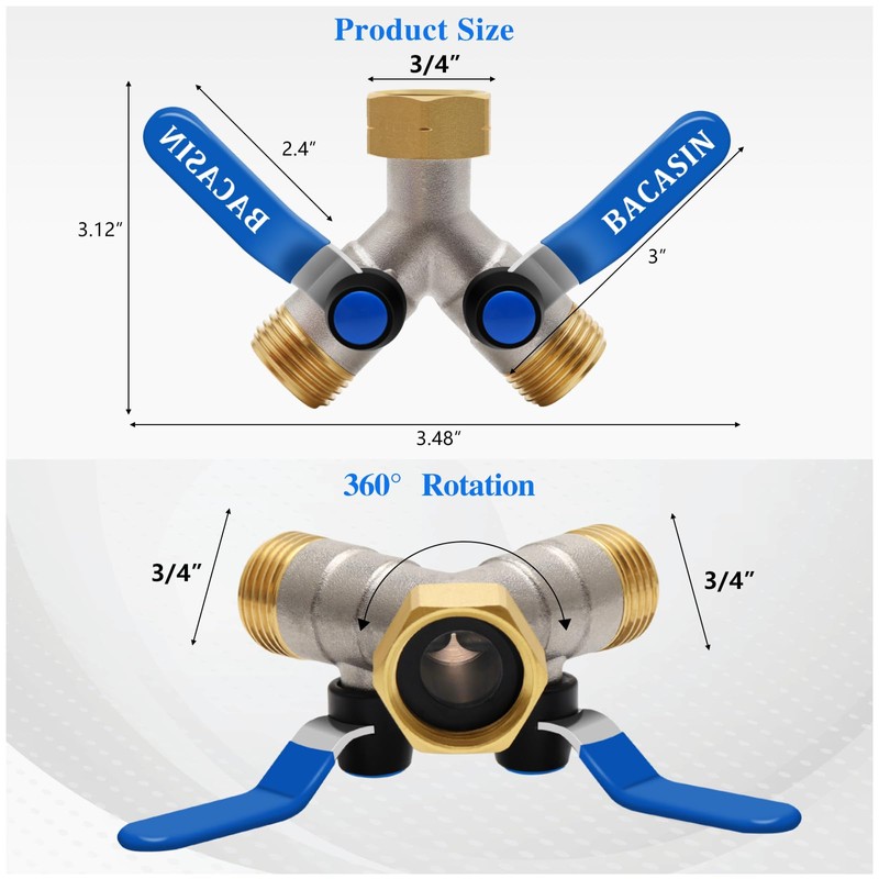 - 【Brass Garden Hose Diverter】3/4 inch faucet Y-connector, brass inlet and outlet, long service life, energy efficient, wear resistant, corrosion resistant, rust proof. Each diverter has a separate valve Controller can adjust the water flow, improve the user convenience.