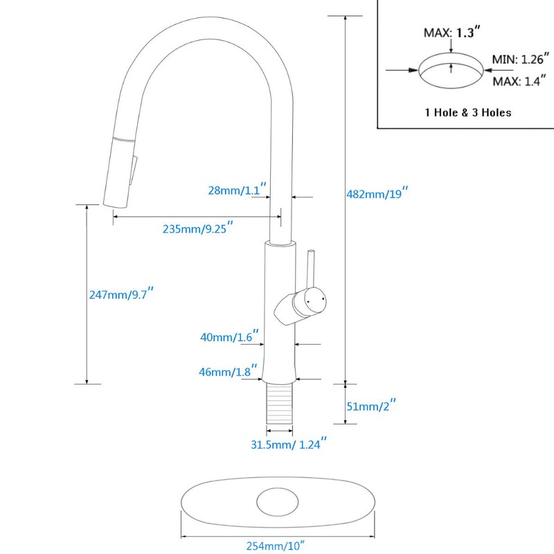 - Provide us with faster installation: Quick Connect hose install by yourself with 15mins, deck plate can fit 1 hole and 3 hole kitchen sink. Let you save more time. Inlet water line is made of PEX and no rust, let our kitchen cleaner.