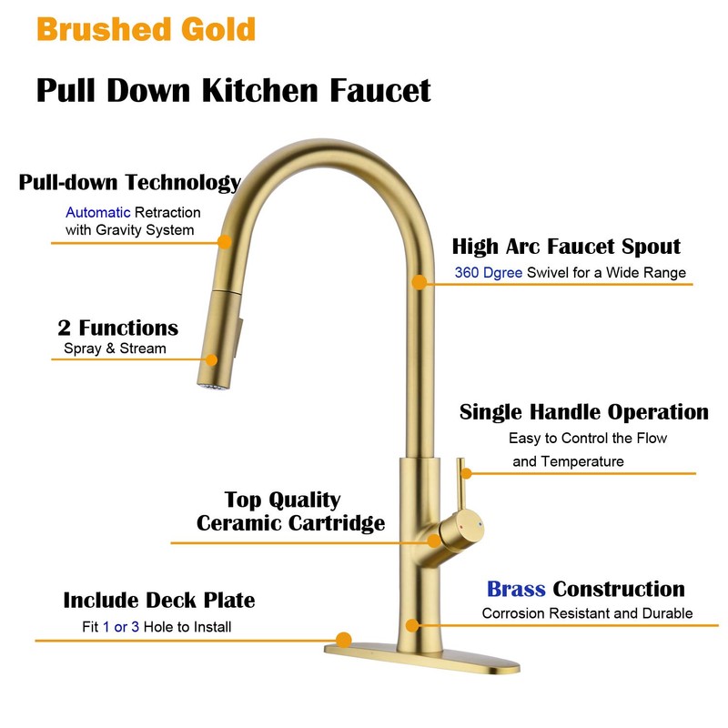 - Give us a new style and finished:New Style avoids our visual fatigue. Super Matt Brushed Gold Fingerprint Resistant Finish, rust and corrosion resistance. Make our kitchen life more fun.