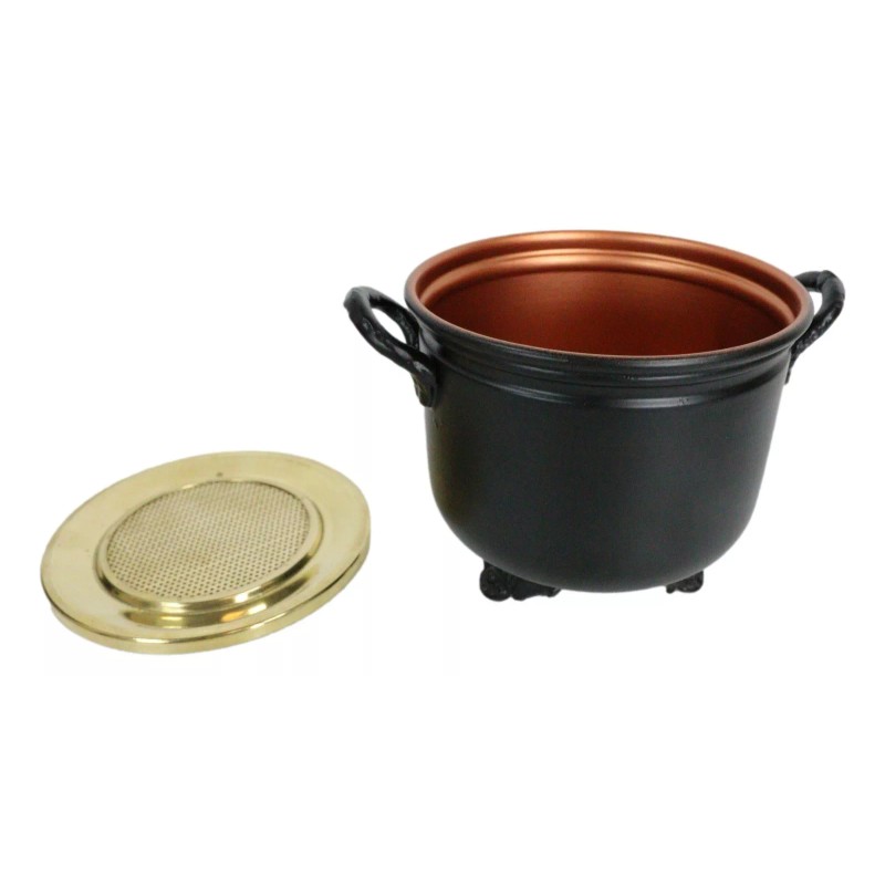 • This is a lightweight metal cauldron to be used for burning resin incense granules by placing a hot charcoal disc inside.