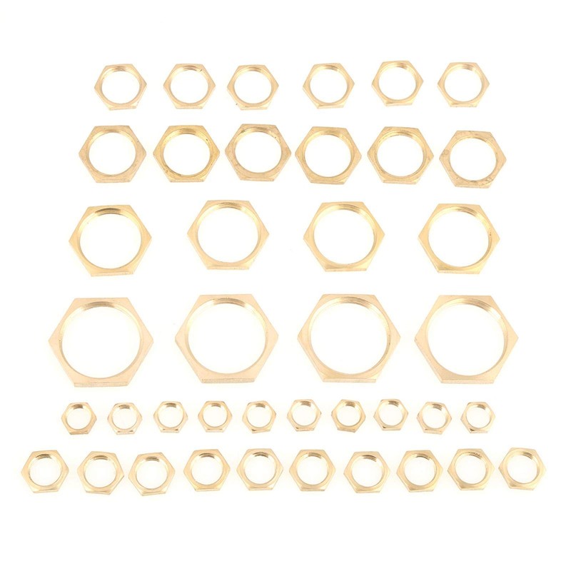 Brass Hex Lock Nuts, 40pcs G1/8 G1/4 G3/8 G1/2 G3/4 G1 Thread Pipe Fitting Brass Hex Lock Nuts Thin Nut for Plumbing on Thread Pipe and Hose