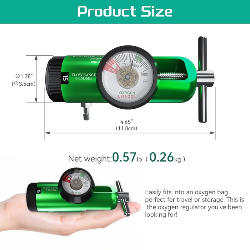 - Compact Size: "4.65×2.4×1.38", Designed with a lightweight mini body. The compact size makes it easy to fit into any oxygen bag, making installation easier and reducing assembly time for use at home or outdoors.