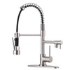 Brass Kitchen Faucet with Pull Down Sprayer, WOWOW High Arc Commercial Spring Kitchen Faucet for Sinks 1 or 3 Hole, Single Handle Brushed Nickel Kitchen Sink Faucet with Deck Plate