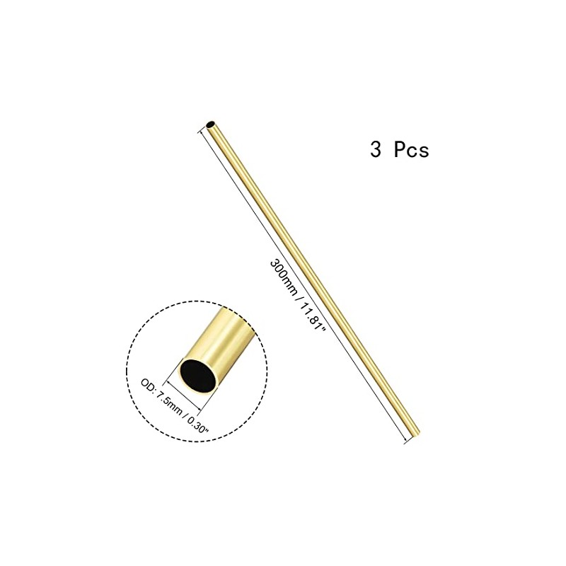 Brass Round Tube, 300mm Length 7.5mm OD 0.5mm Wall Thickness, Seamless Straight Pipe Tubing 3 Pcs