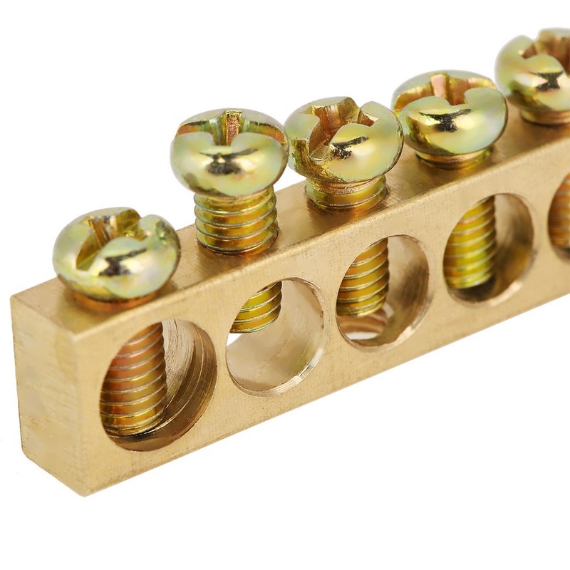 Brass Terminal Blocks,10pcs 10-Hole Electrical Distribution Wire Screw Terminal Brass Ground Neutral Bar (10-Hole)