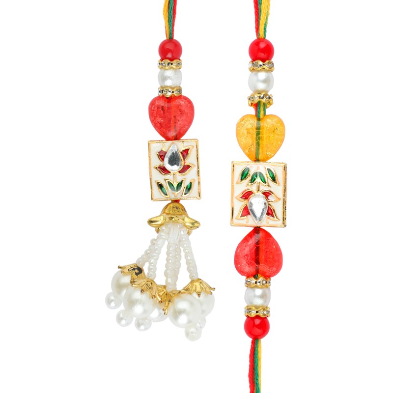 - 🌟 Elegant, Handmade Traditional Rakhi Dora made with cotton thread, beaded with Multicolour Stone, Moti, Minakari and Kundan Pendant, Moli, Mouli Kalawa. Religious Elegant Rakhi Rakhee Made with love and Blessings from the artisan of India .