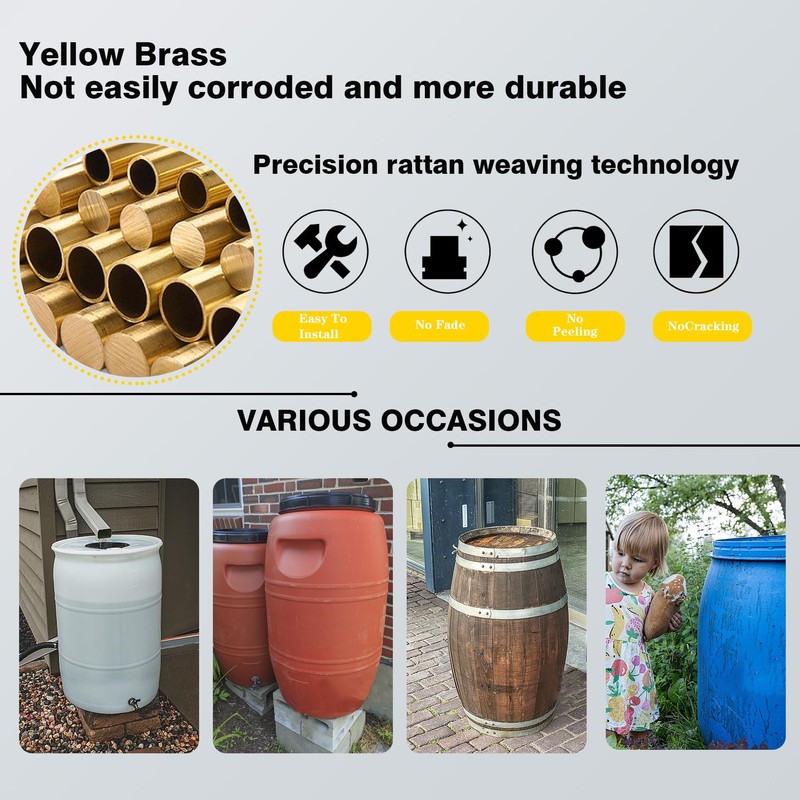 - [Water Butt Fitting] You will receive a brass rain barrel threaded piece with 2 gaskets, size: Ag G1 1/4" x Ig G1". Please check which size you need before purchasing.