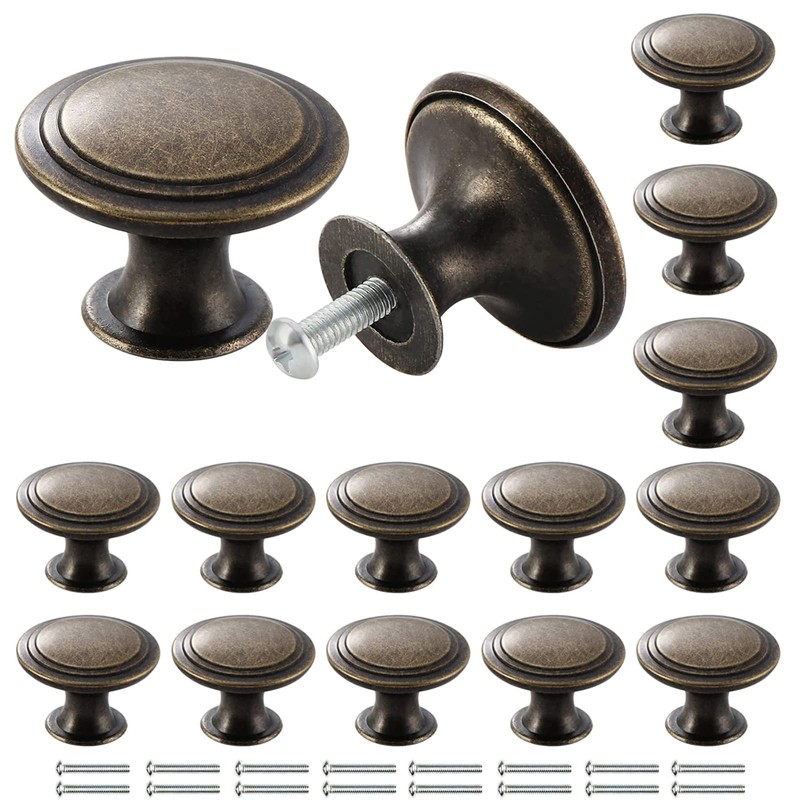 Brateuanoii Pack of 16 Cabinet Knobs, 30 mm, Round Drawer Knobs, Mushroom Drawer Knobs, Vintage Cupboard Knobs, Chic Drawer Knobs, Single Hole Round Drawer Pull Handle with Matching Screws