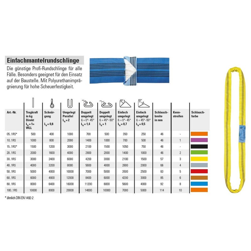 - Round sling 2000 kg load capacity directly in 2.0 m circumference, 1.0 m usable length