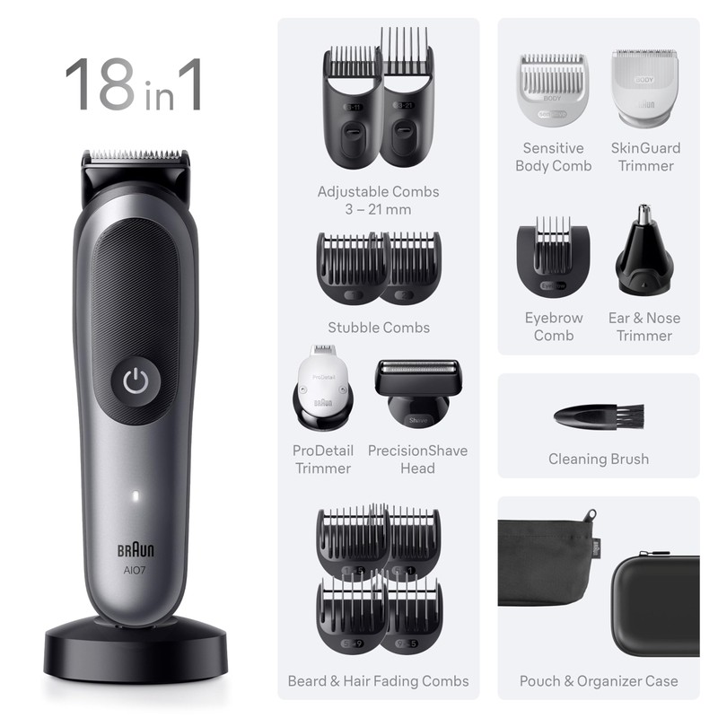 - Professional & 100% effortless styling: Braun’s 18in1 Kit for head-to-toe grooming with curated tools for beard, ear & nose trimming, hair clipping and body manscaping