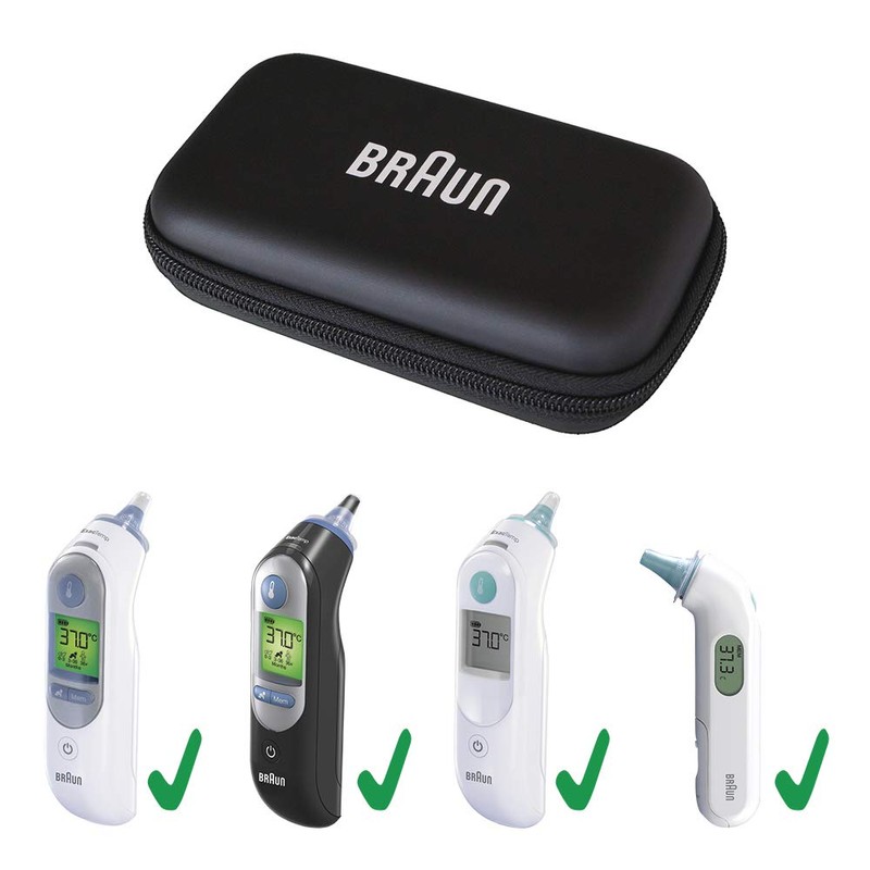 - Hard case for extra protection to keep your ThermoScan ear thermometer safe during storage and travel (Braun ear thermometer sold separately)