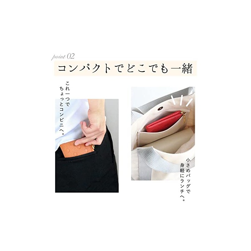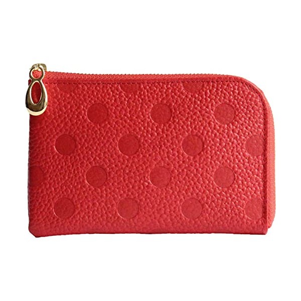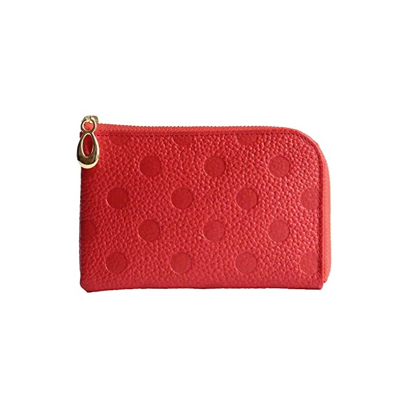 Brave [Himeji Leather] L-Shaped Zipper Mini Wallet, Women's, Made in Japan, Dots, Polka Dot, Elegant, Stylish, External Pocket, Thin, Easy to Use, Cashless, Minimalist, red
