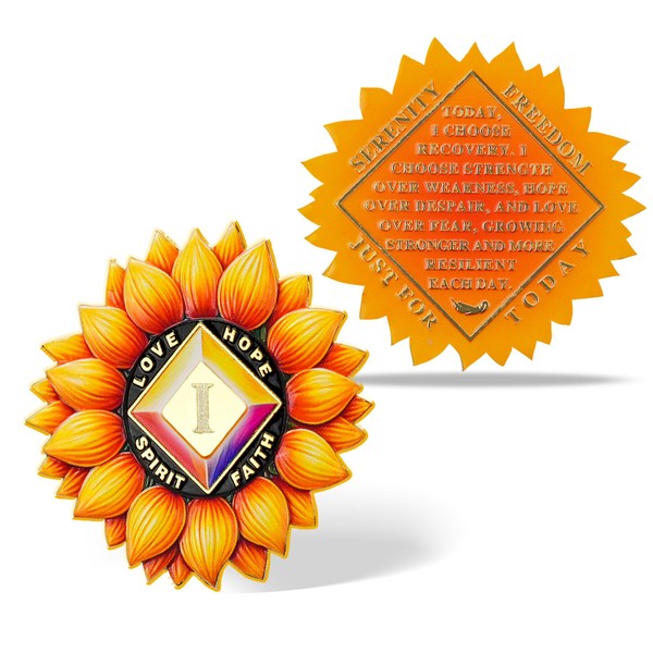 BraveBloom 1 Year Sobriety Coin – Sunflower Diamond AA Medallion for Addictio...