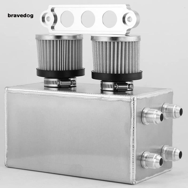 Bravedog 3L Twin Baffle Dual Filter Engine AN10 Oil Catch Can Tank Reservoir (3L-Silver)