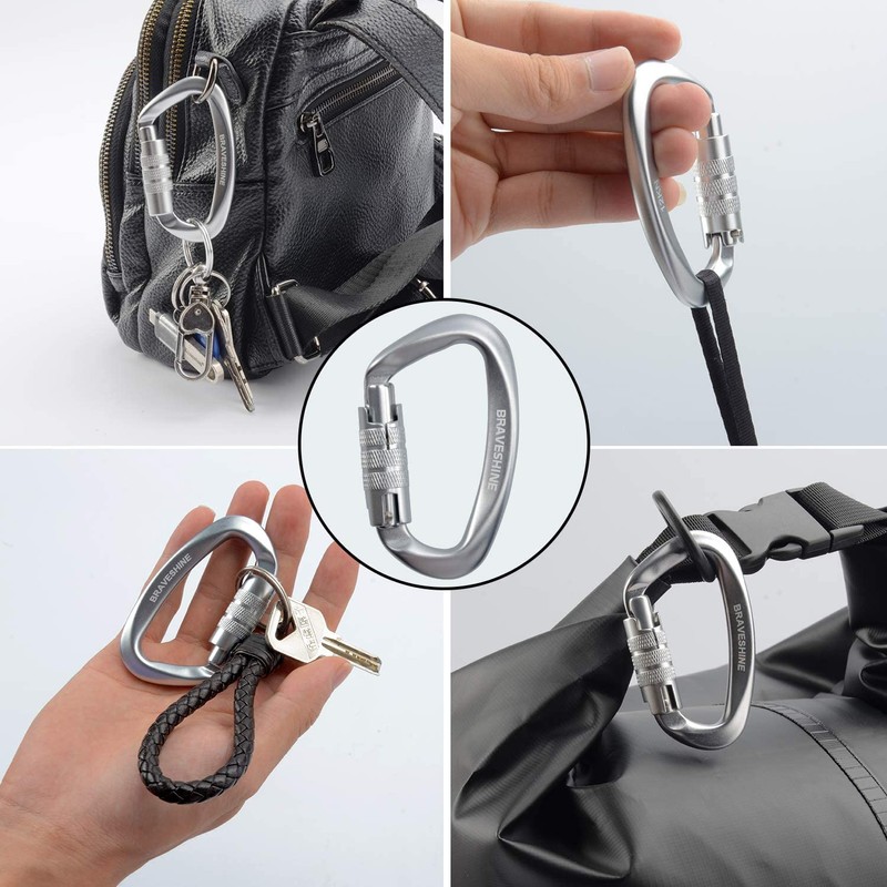 - Smart Locking System: These carabiners are lightweight with screw-lock closing mechanism and each one can bear up to 26400lbs of force. BRAVESHINE Heavy-Weight Carabiner - 2 Pack D Ring Snap Keychain Locking Caribeaner Clips - 12KN Aluminum Screw Buckle Carabiner Hook for Men Women Workout, Climbing, Hammocks, Dog Leash, Swing.