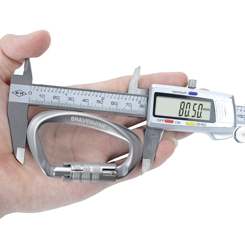 D shape keeps carabiner strong by concentrating weight on the straight spine. Can witstand up to 26400lbs forces.