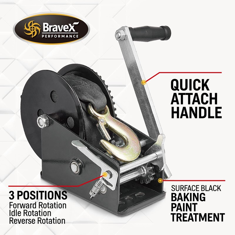 Bravex Boat Trailer Winch 3500lbs with 33ft Strap, Heavy Duty Hook Portable Hand Winch, Two Way Ratchet Manual Winch for SUV ATV UTV for 4:1/8:1 Gear Crank Winch (3500lb with Cable Black Winch)