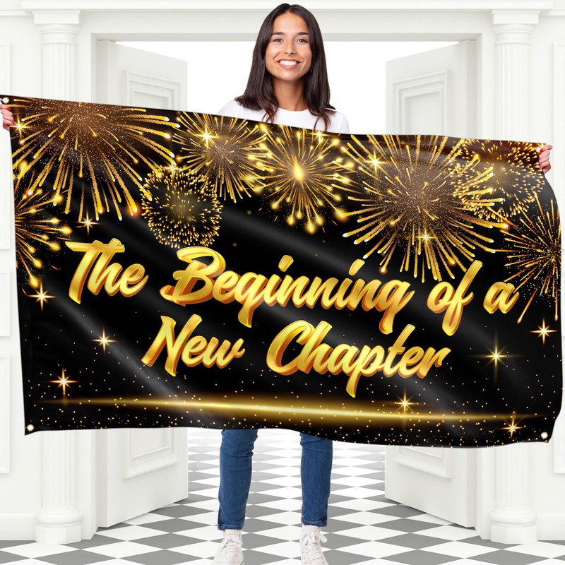- Specification: Package includes 1pcs The Beginning of a New Chapter Banner 5 x 3 ft. Does not include rope, brackets, pockets or clips.