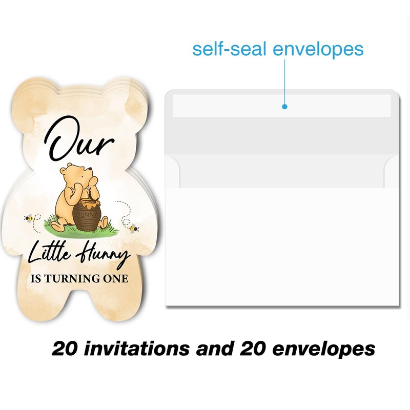 brayqu Winnie the Pooh First Birthday Party Invitations, Our Little Hunny Is Turning One Pooh Bear Shaped Invitations Fill-in 1 Year Old Invites (20 Invitations with Envelopes)