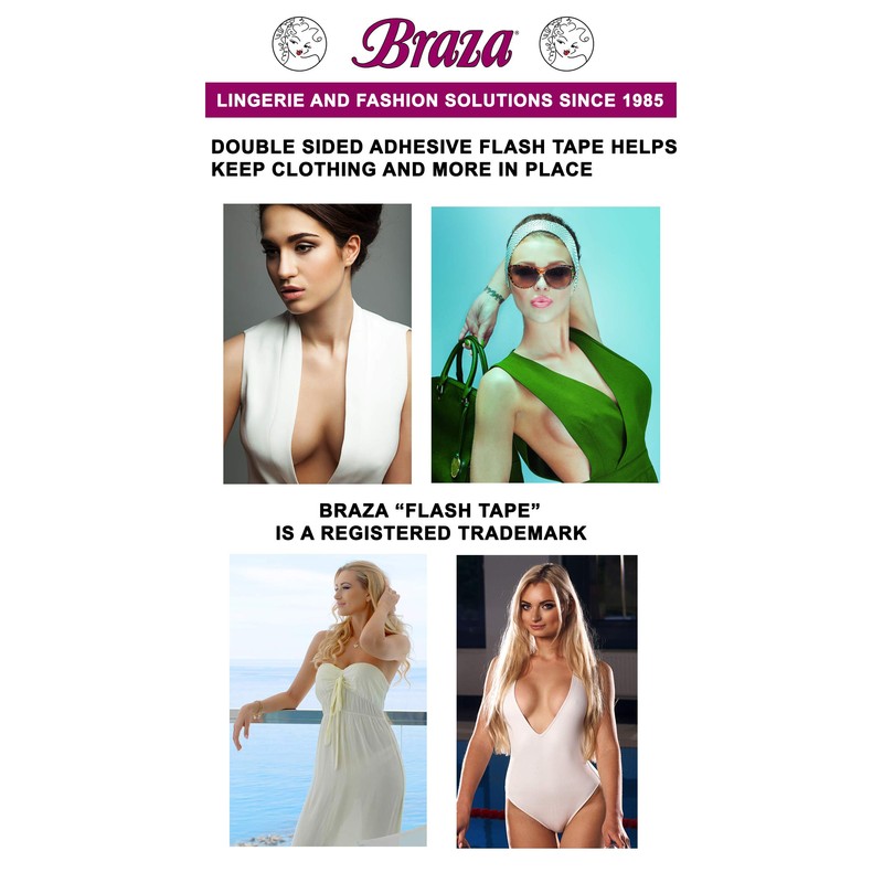 Braza Flash Tape - Double Sided Clear Adhesive Clothing, Fabric and Body Tape, (4) 20ft Rolls