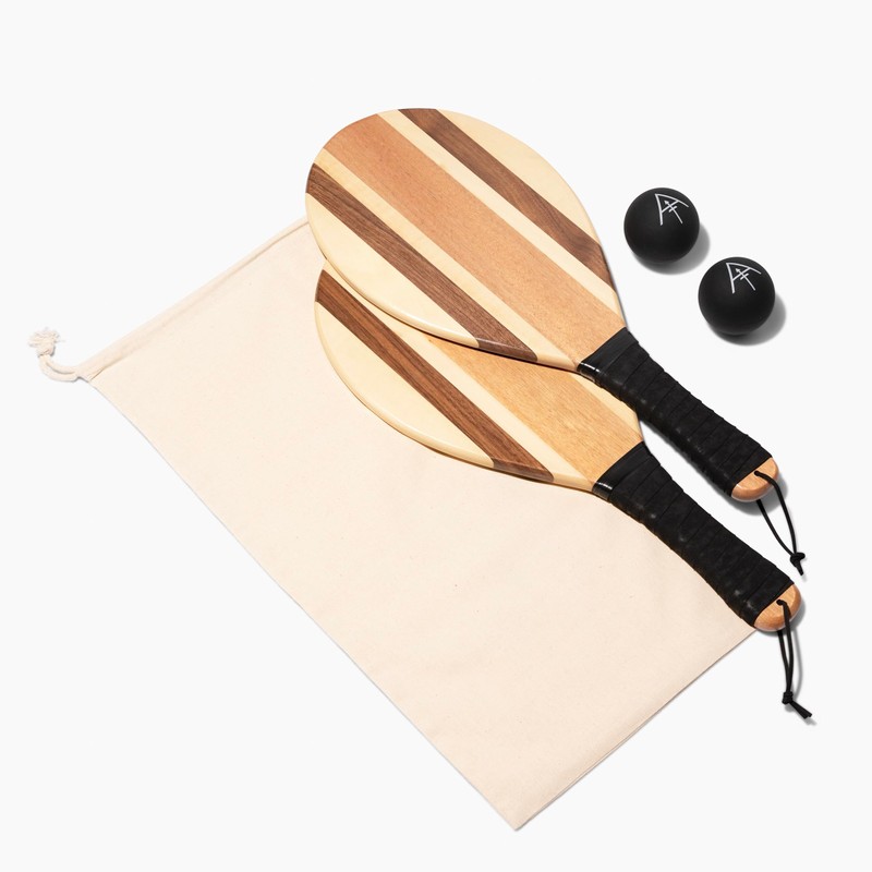 - Handcrafted Natural Wood Paddles – Each paddle is made from solid wood with signature beach-stripe detailing. Built for beauty, balance, and durability. Each set is individually crafted, with slight variations in wood grain and hue, making every pair one-of-a-kind.