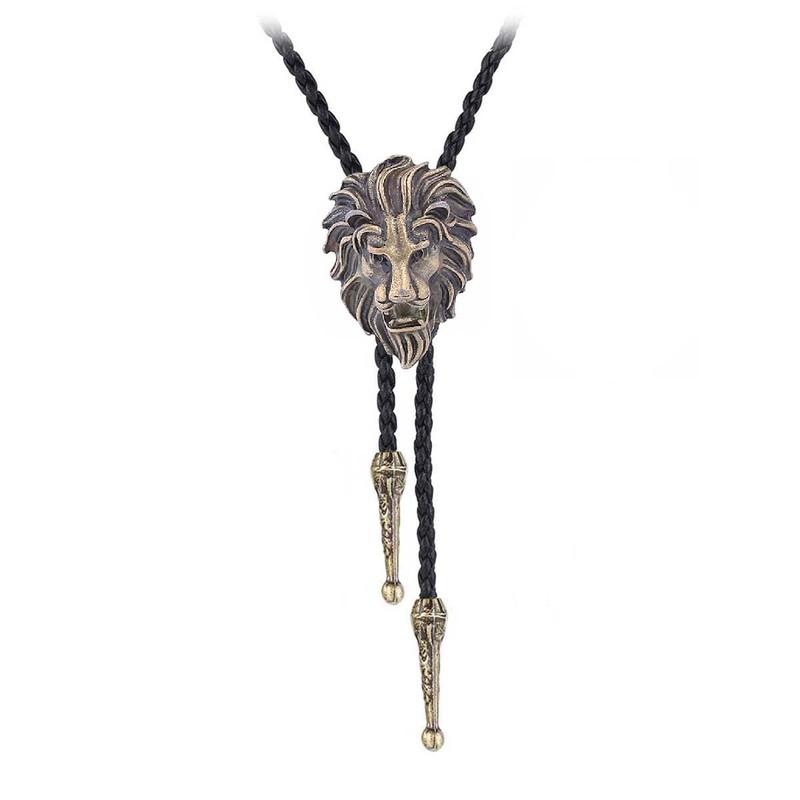 BRBAM Western Style 3D Design Animal Pendant Bolo Tie Neclace Stylish Retro Cowboy Gift (Lion-Gold)