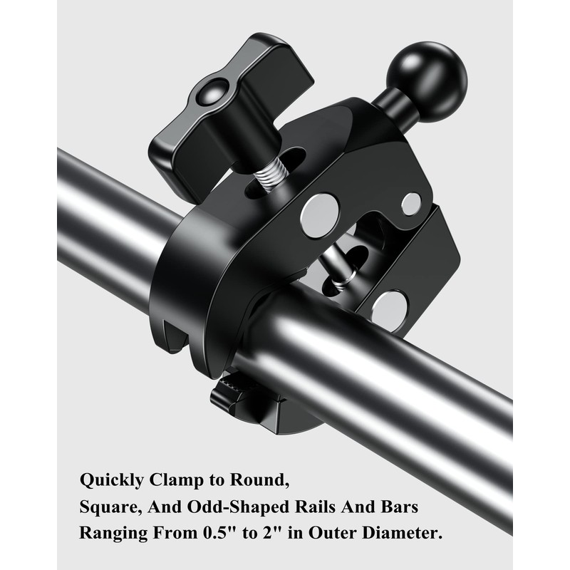 - The 17mm ball mount main body made of 6061-T6 aluminum alloy for durability and reliability in the most demanding environments. CNC integral molding, solid structure. Anodized surface treatment, smooth surface, durable. The aluminum alloy tough-claw of clamp mount with built-in TPU provide stable gripping and protection of mounting surface