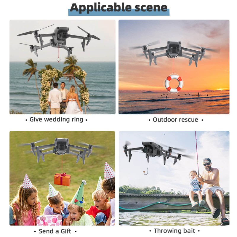 - UNLIMITED OPERATING RANGE - direct control of the drop via the original drone remote control, without the limitation of remote control distance, creating more new possibilities.At family gatherings, Halloween, Christmas, birthday parties, you can put balloons, flowers, confetti, candy, party favors, drinks, etc. to add unlimited fun to your life.