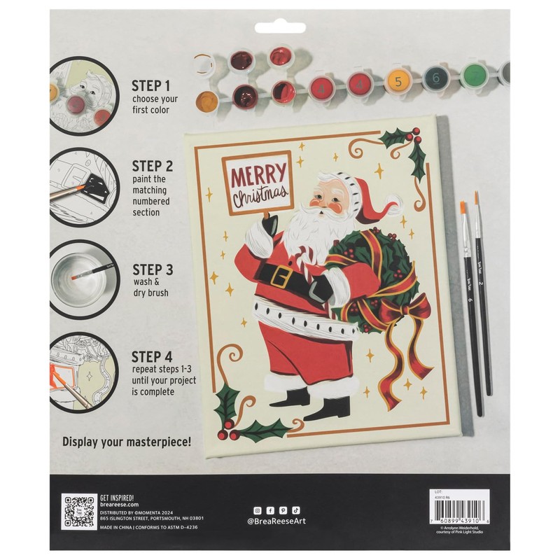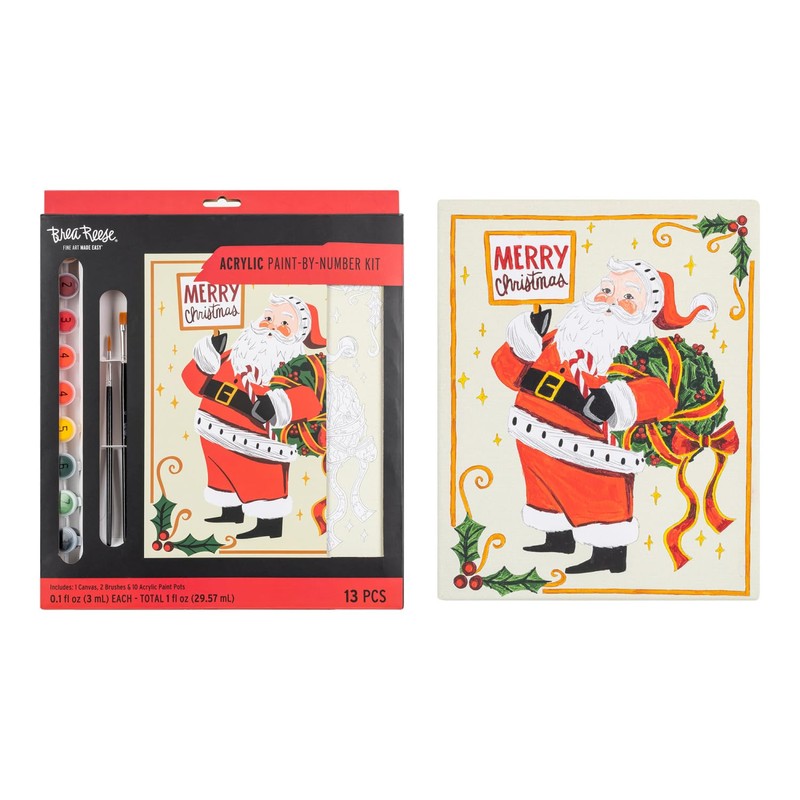 Brea Reese: Acrylic Paint-by-Number Kit - Santa - Easy Guided Canvas Painting, 10 Colors, Relaxing Holiday-Themed Art Activity, Festive Adult Craft