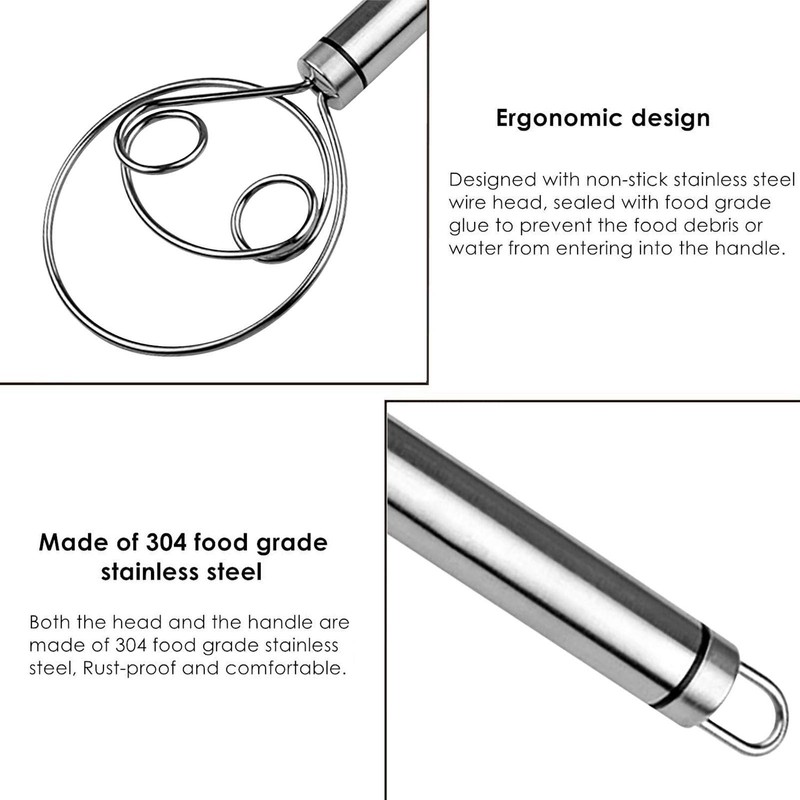 - Great Quality: Always have your whisk to hand! With our Danish Dough Whisk, crafted from superior 430 stainless steel, you can mix your dough at any time. The long handle provides leverage that perfect for blending and folding, easier to fusing together your ingredients.