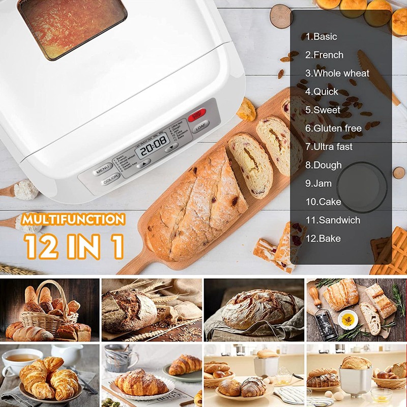 - 【12 Pre-Programmed Options】Our breadmaker can craft whole wheat, gluten-free bread, and even jam effortlessly. Moreover, you can customize your loaf with three crust shades and sizes (2lb, 1.3lb) with our bread buddy. Perfect for homemade bread lovers, it's not only a dough maker but also a bread oven