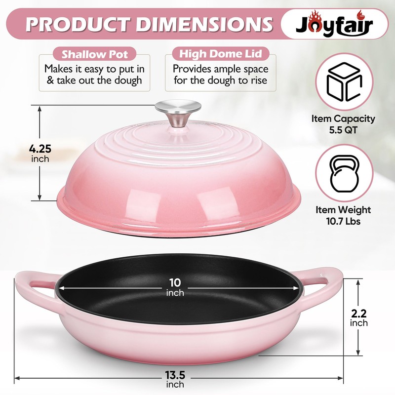 Bread Oven for Sourdough (5.5 QT), Joyfair Enamaled Cast Iron Bread Dutch Oven with Lid, Sourdough Bread Baking Pan with Heavy Duty Dual Handles, Non-Stick & Even Cooking, Oven-safe up to 500°F, Pink