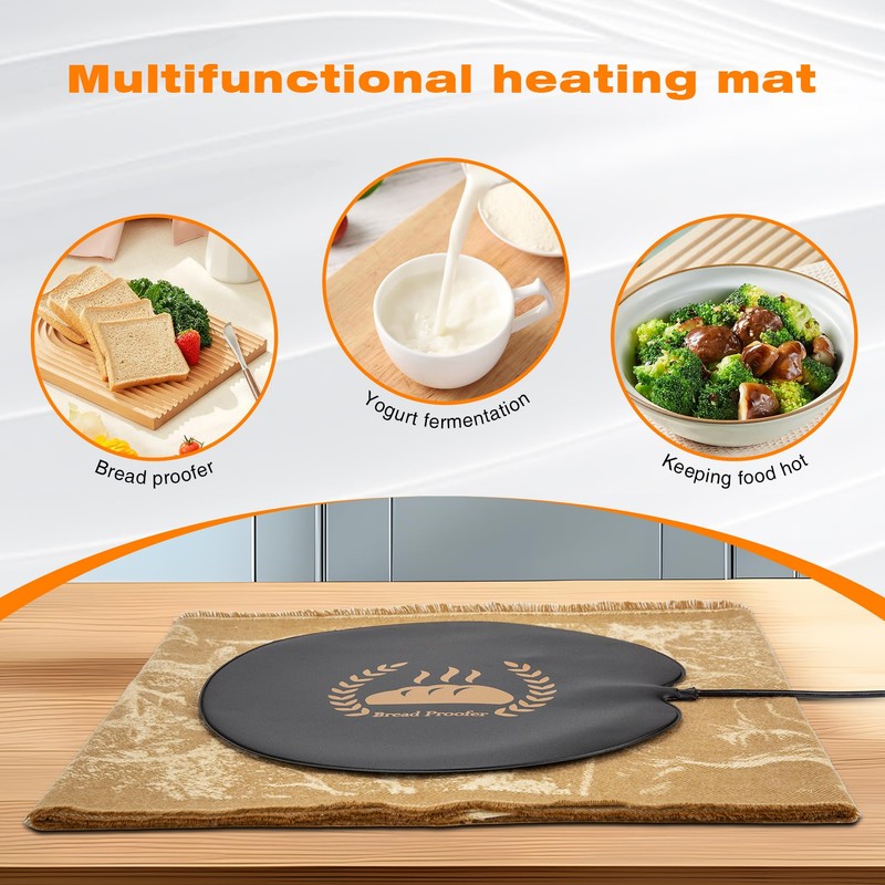 - BREAD WARMING MAT: Bread warming mat can not only ferment dough, but also help to ferment meat, ferment yogurt or some fruits and wines that need to be fermented, as well as other foods and items that need to be kept warm, such as cookies, fried chicken and so on. As the default temperature is 89℉, which is lower than the human body temperature, please note that you need to set a higher temperature to achieve the heat preservation effect when using the heat preservation function